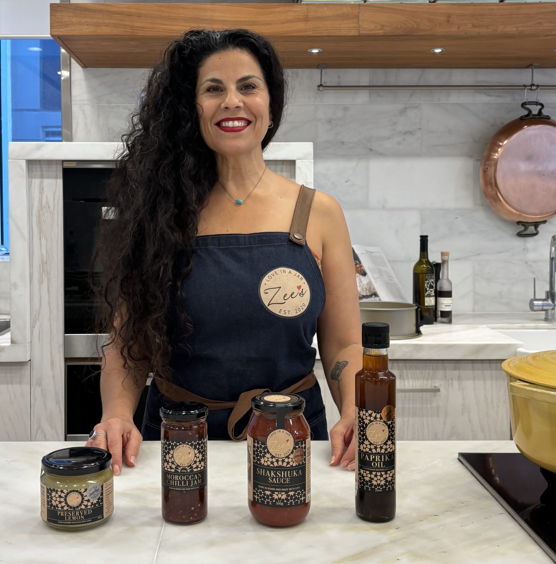 This two-hour experience is tailored just for you. Zee will guide you step-by-step through creative recipes using her signature products — Shakshuka Sauce, Preserved Lemon, Paprika Oil, and Moroccan Chilli Jam — and the ingredients you already have in your kitchen.